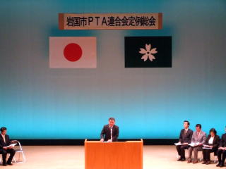 | 岩国市PTA連合会会長 松本 浩一 挨拶 | 副市長 大伴 國泰 様 ご祝辞 | 議長 高田 和博様 ご祝辞 |